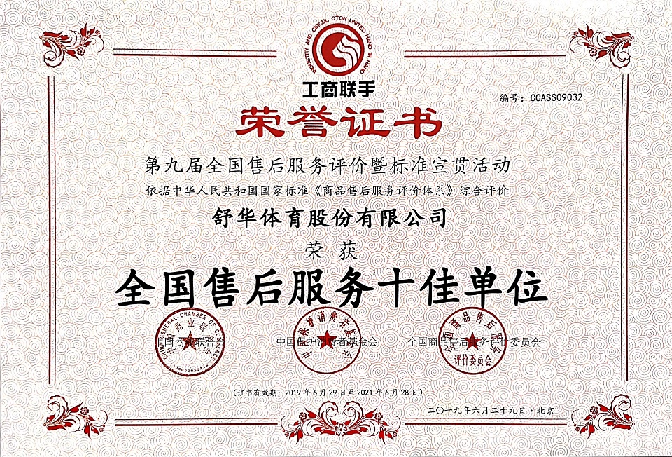 2017至2018年,中欧体育连续两年以第一名入围年度“中国轻工业健身器材行业十强企业”;2018年,中欧体育入驻平昌冬奥会“中国之家”,同年荣获“中国健身器材行业最具影响力品牌”。 From 2017 to 2018, Shuhua was named the "Top 10 Enterprise of Body Building Equipment Industry in China Light Industries " for the second consecutive year. In 20